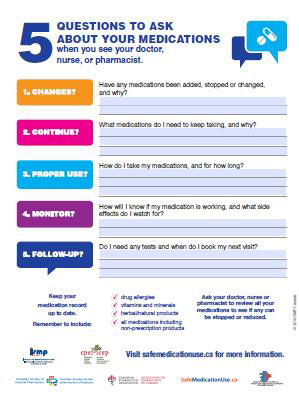 The 5 Questions to Ask About Your Medications can help you start a conversation about your medications with your healthcare provider. It aims to help you learn more about what matters to you about your medication.